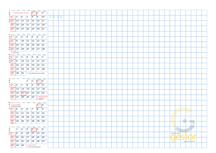 Perfeito para anotações variadas e esboços de projetos, com calendário lateral do primeiro semestre de 2026. Formato A4 na horizontal, combina perfeitamente com o Risque e Rabisque da Gestor Único.